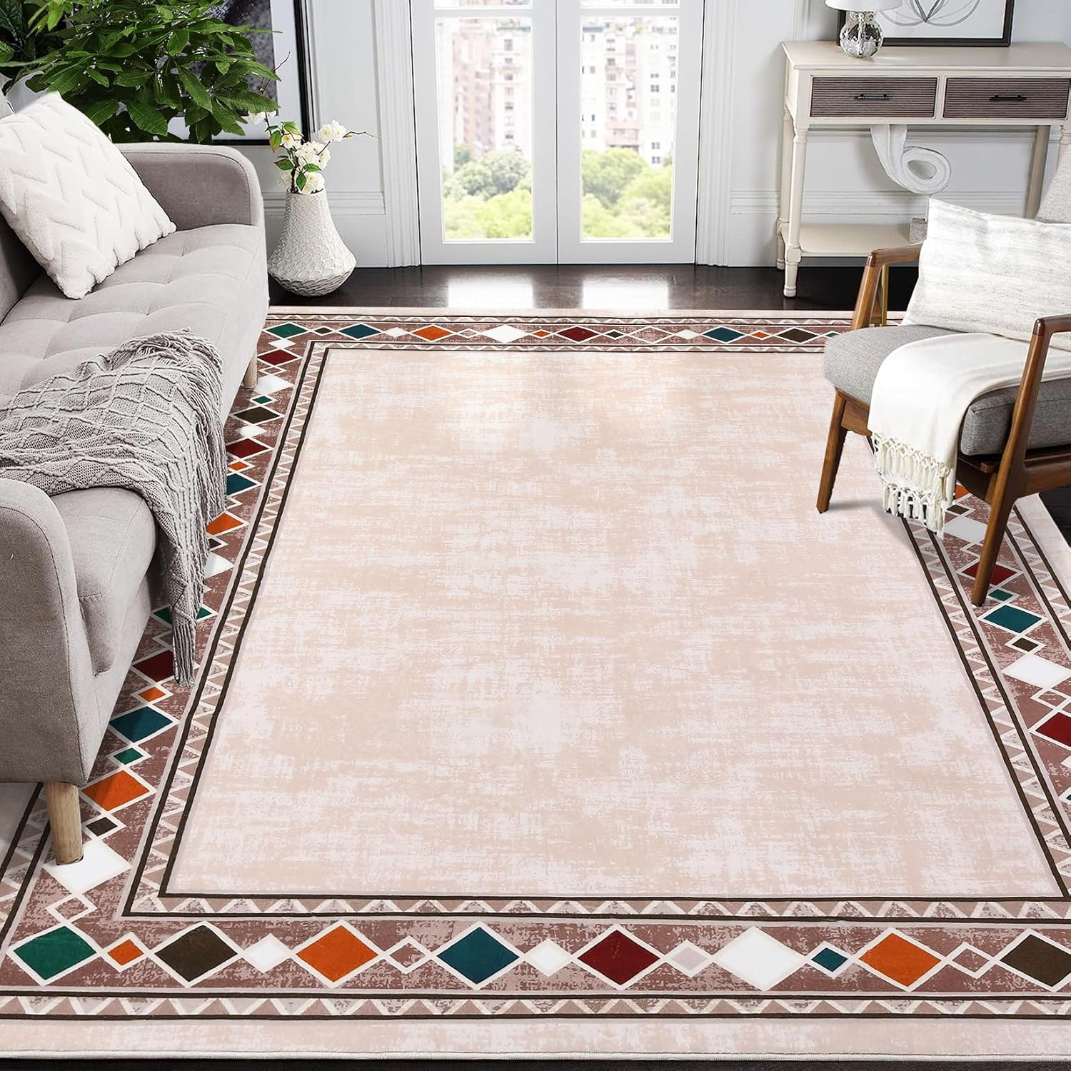 Affordable Washable Rug Can Help You Better Deal with Kids, Pets and Everyday Messes!Specification:This is a nice soft classic style rug that would go with almost any other colors, it would look great in your living room, office, bedroom, dining room, under the kitchen table, etc. -Product Material:1. NON-SHEDDING:Our Washable Area rugs are made of enhanced synthetic durable fibers, not only soft but also resists color fading and have a virtually non-shedding low pile.2. Upgrade the lining of area rugs so the rugs are very soft.3. NON-SLIP:The rug backing was coated with textured TPR to help the rug stay in place, you don’t need to pay for an extra rug pad.-Size(Ft): 2x6/4x6/ 5x7/ 8x10/ 9x12/10X13 Feet-Feature: Machine Washable& Non-Shedding& Non slip& Low Pile& Vintage & Floral& Distressed& Printed& Traditional-Application: Living room/Bedroom/Dining room/Runner/Entryway/Kids /Playroom/Home office/Kitchen/Farmhouse/Floor/Hallway/Laundry-Package: Area rug x 1pcs-Location: Indoor/Outdoor Use Care Instructions:1. Avoid vacuuming the fringes of your rug, use a broom to clean fringes.2. Deep clean the rug with warm water (no bleach or fabric softener) to remove dirt.3. Machine wash with cold water on gentle cycle(Do not use bleach). Line dry or dry on low heat, Do not use an iron.